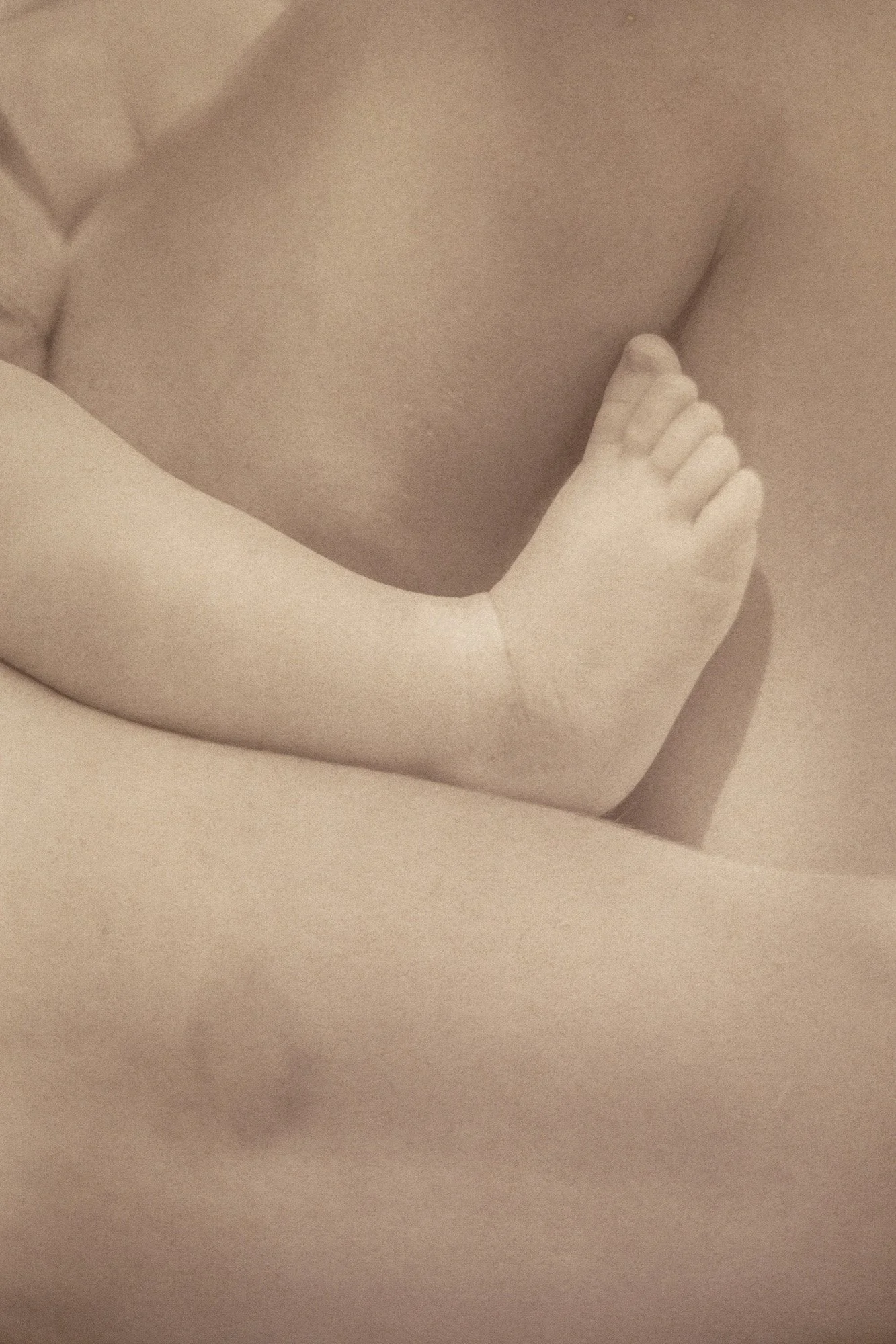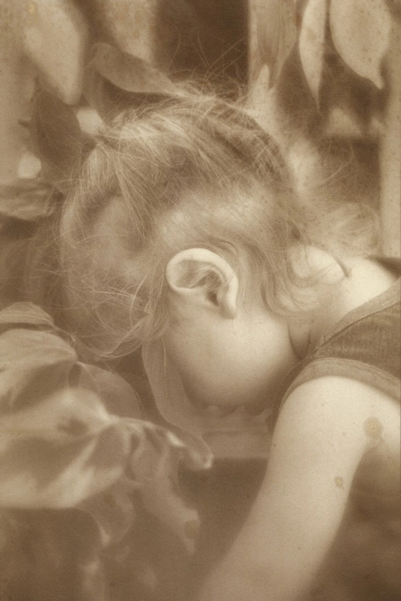 Erin and Lev, 2025. 9 x 13.5” Salted paper print made with Breastmilk. © Eleanor Oakes