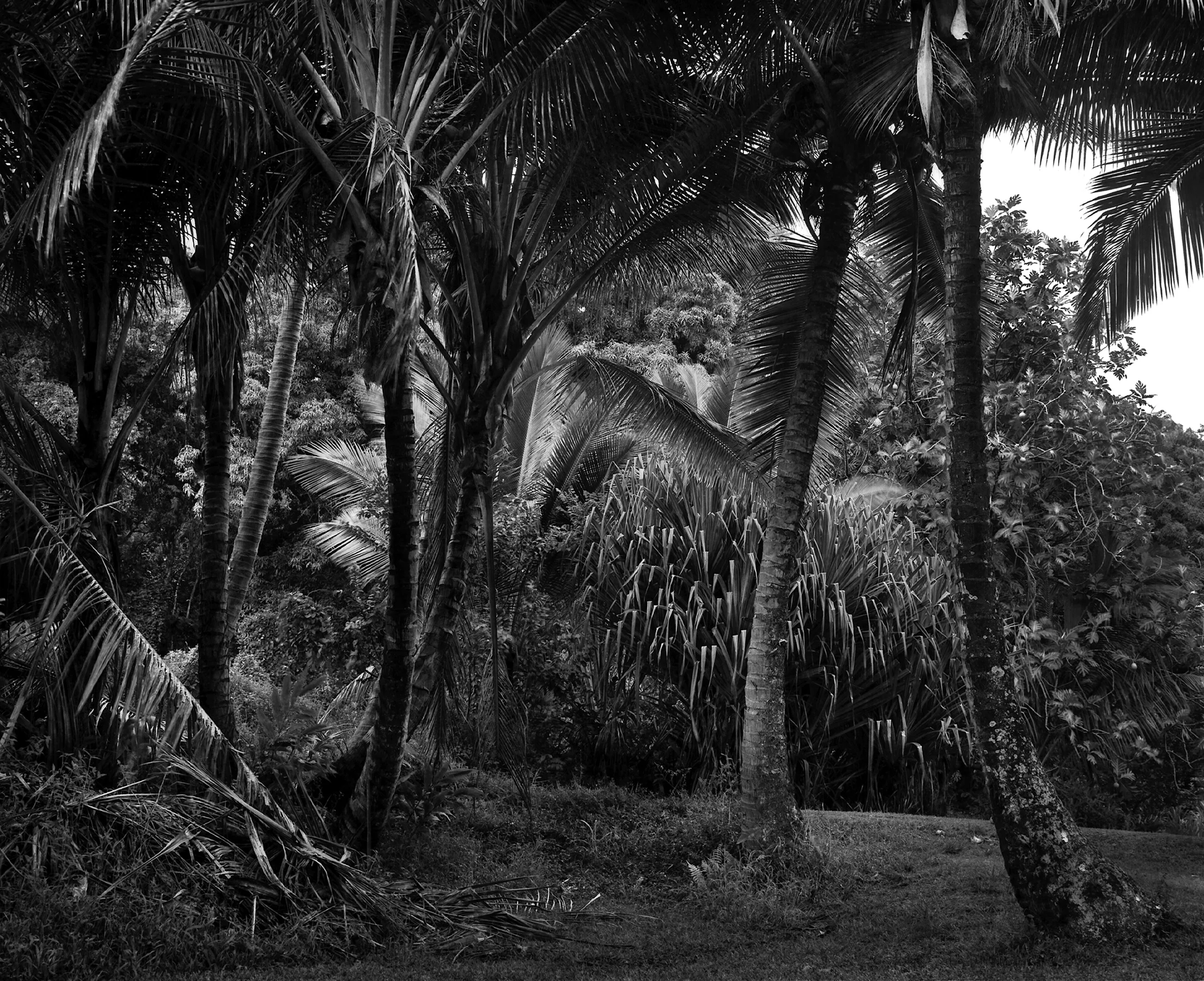 Image © Jon Goodman. The picnic table, Kapahu Living Farm, Kipahulu. Photogravure.