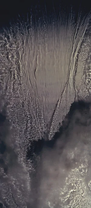Image © Lucy Helton. "Transmitted Geological Landscape 8φ 64° 48' 13'' Nλ 23° 46' 41'' W", Thermal Print. 2014