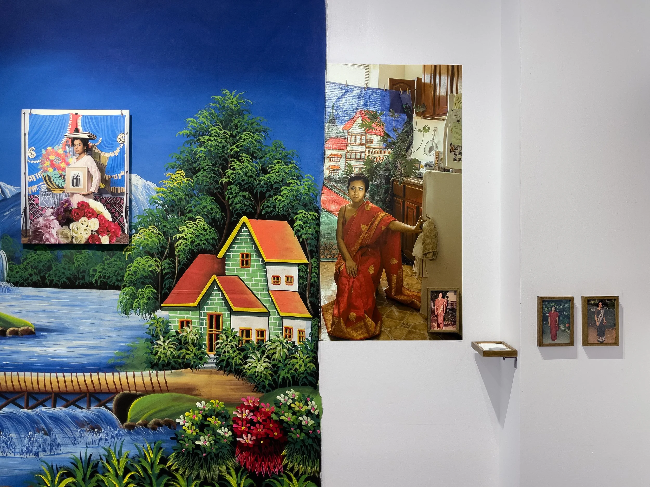 Marriage Material by Cheryl Mukherji is a site-specific installation that considers desirability, femininity, and domesticity in traditional matrimonial photographs and contemporary courtship.